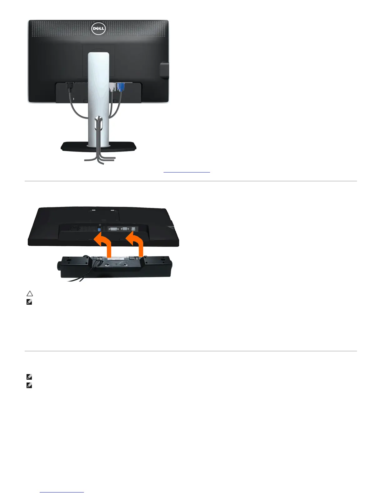 1. Working from the back of the monitor, attach the Soundbar by aligning the two slots with the two tabs along the bottom of the monitor.