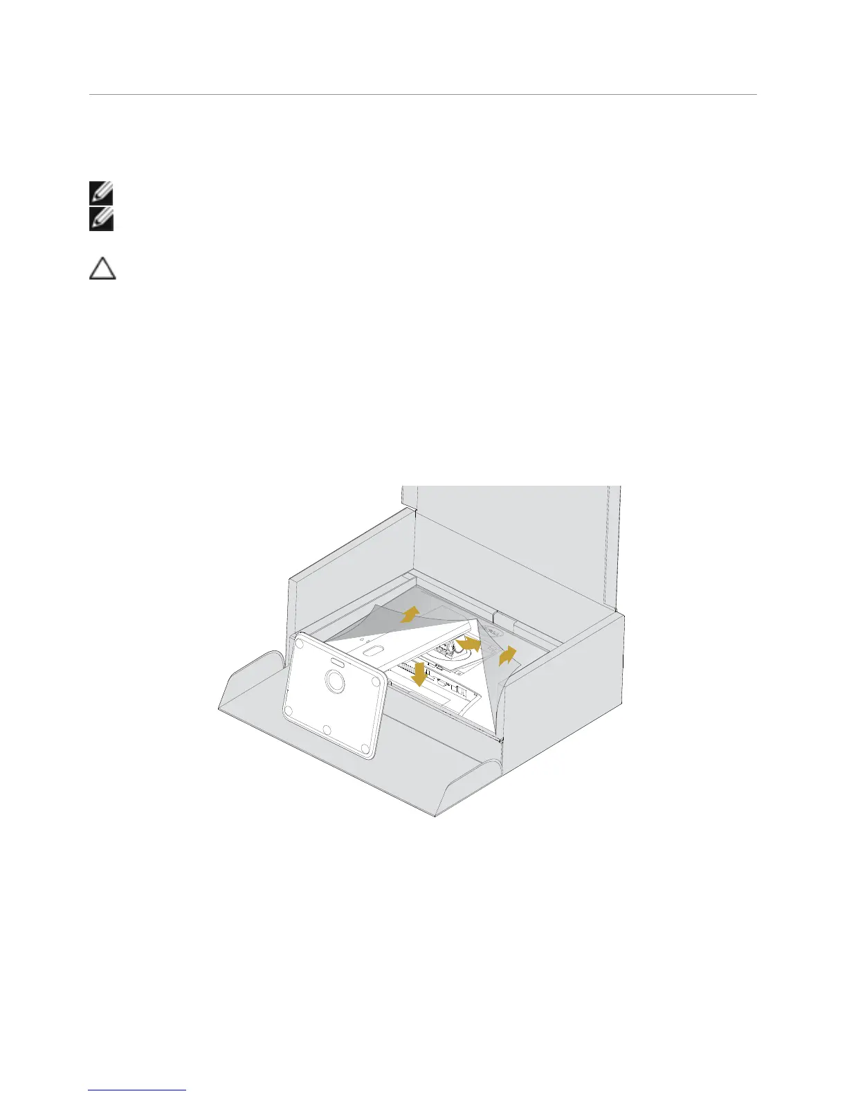 CAUTION: Do not remove the monitor from the packaging box before attaching