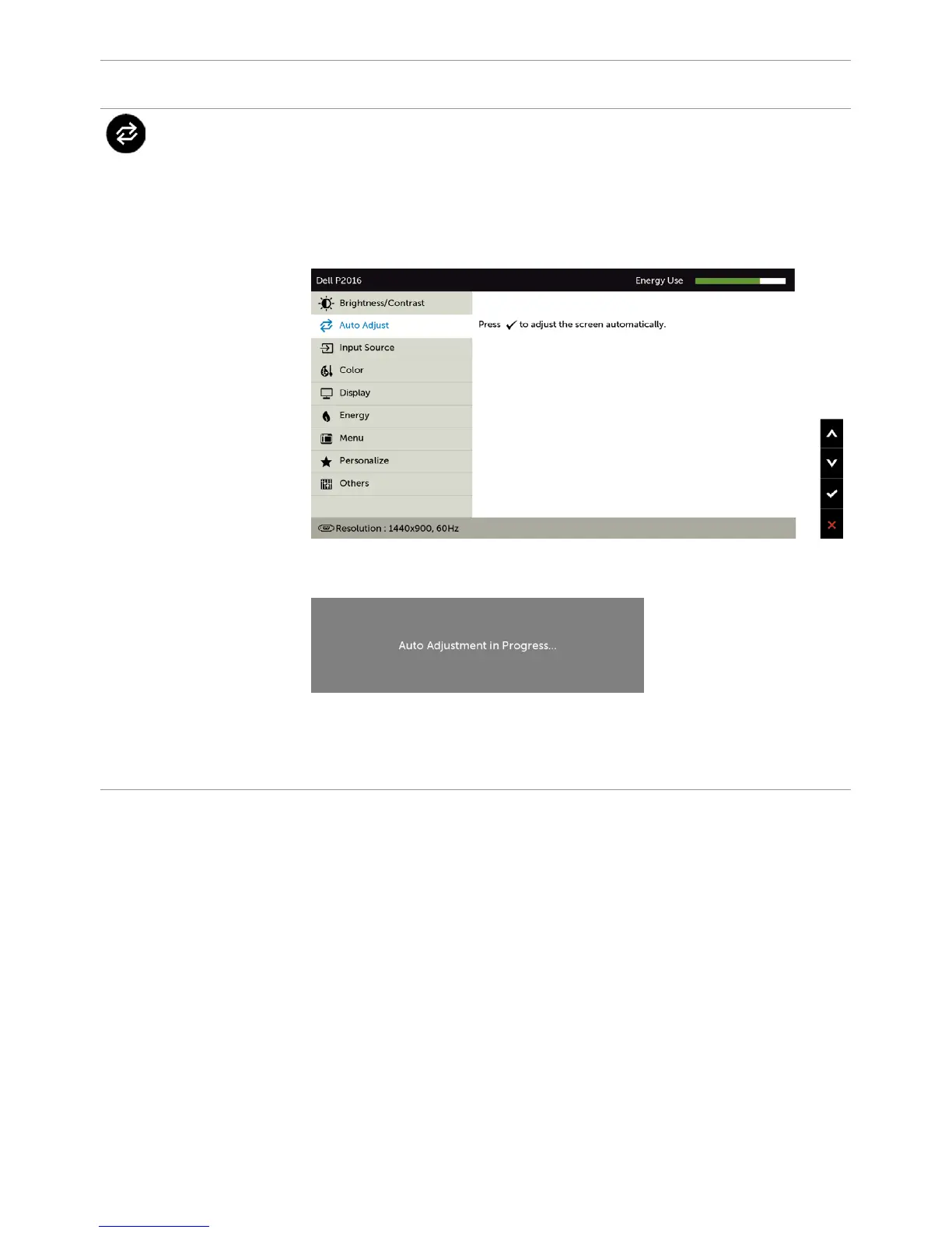 Auto Adjustment allows the monitor to self-adjust to the