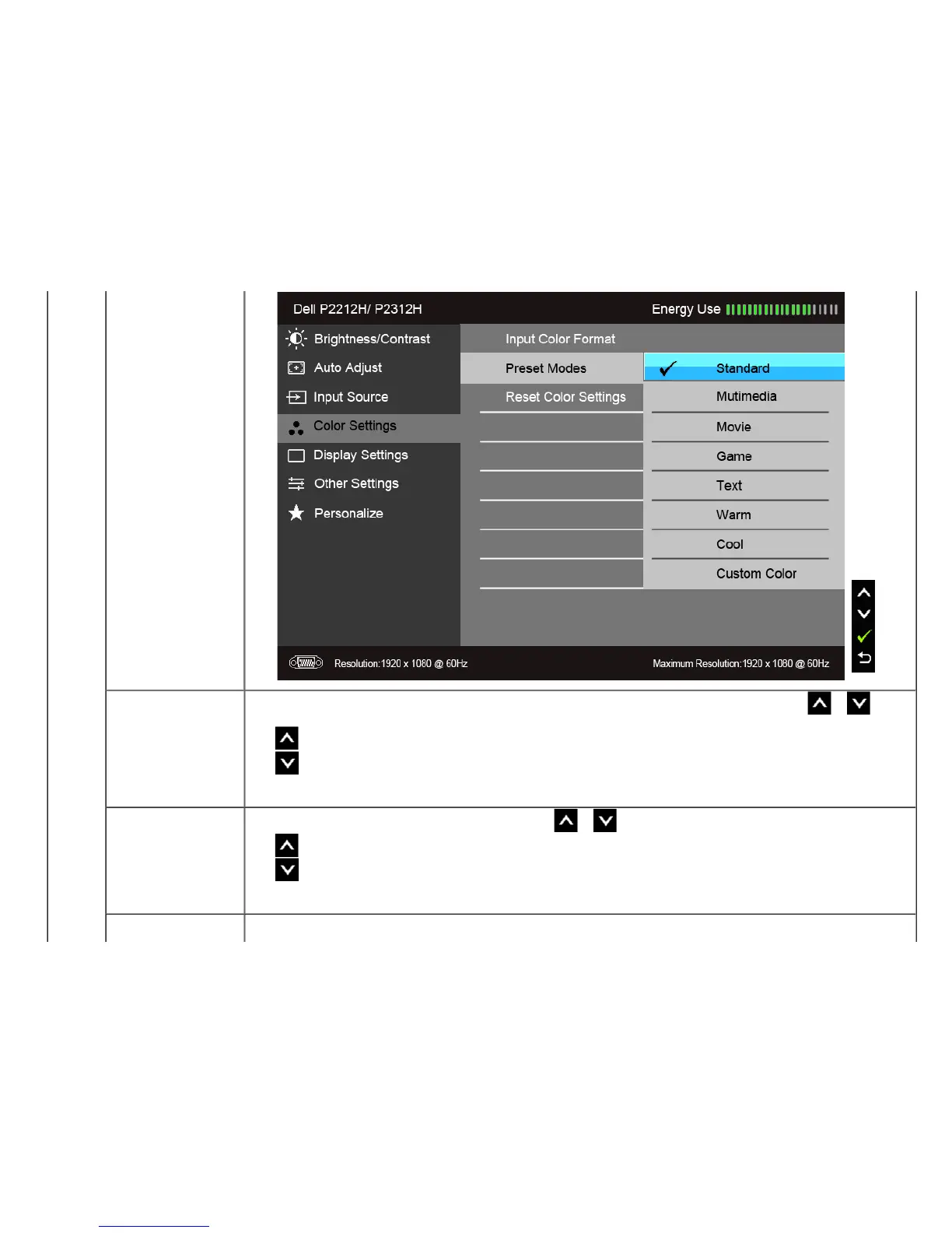 Reset Color Settings Reset your monitor color settings to the factory settings.