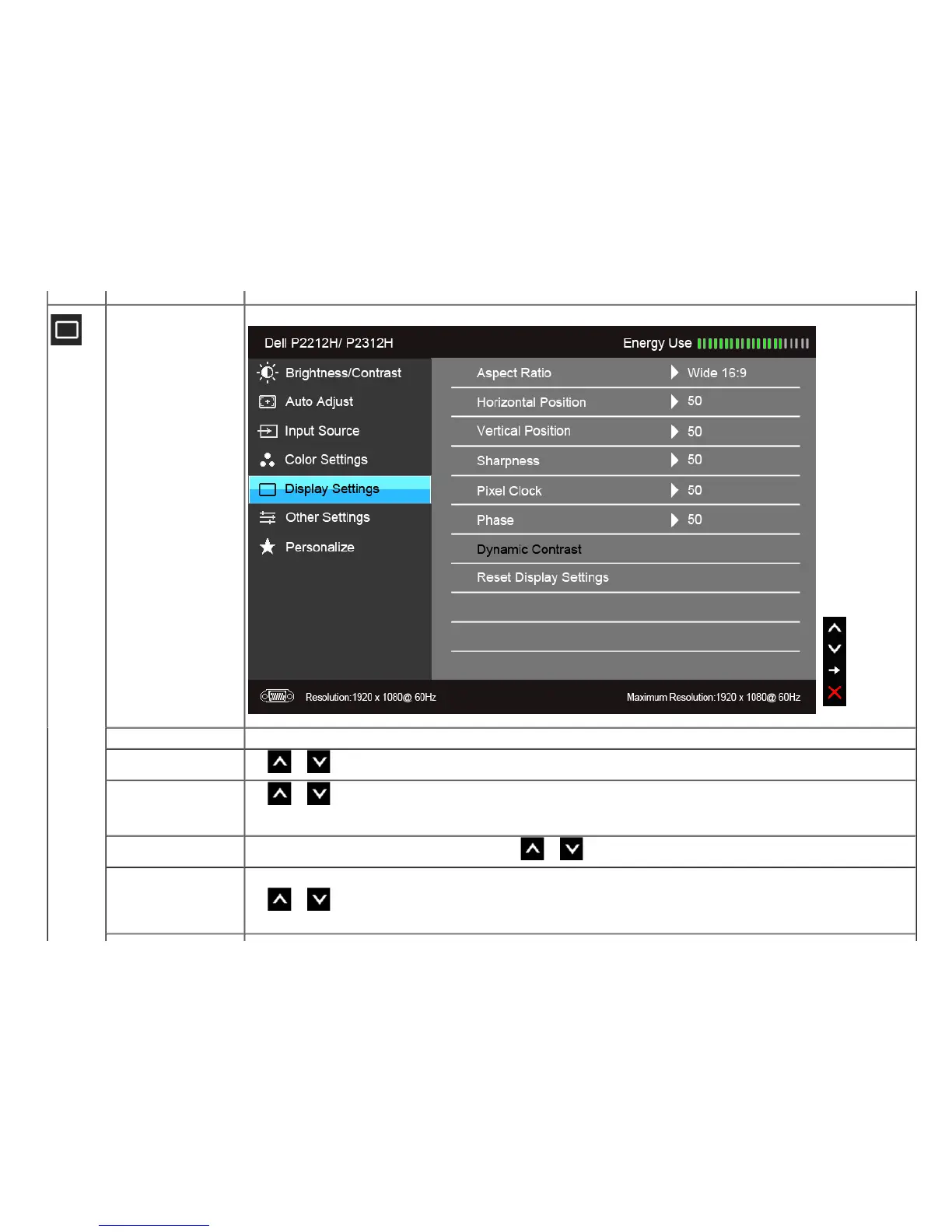 Display Settings Use the Display Settings to adjust image.