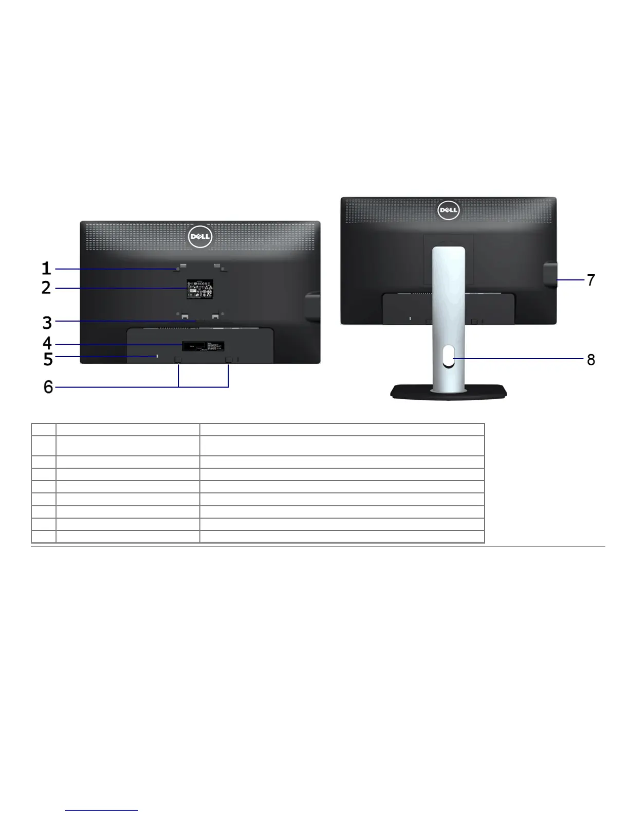 6 Dell Soundbar mounting brackets Attaches the optional Dell Soundbar.