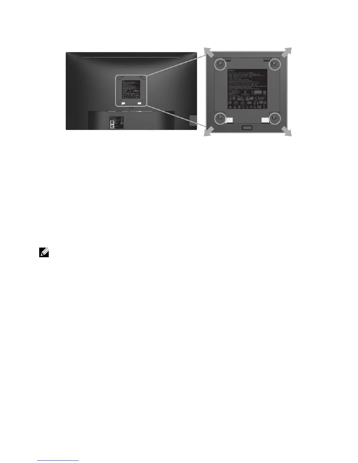 4 Attach the mounting bracket from the wall mounting kit to the monitor.