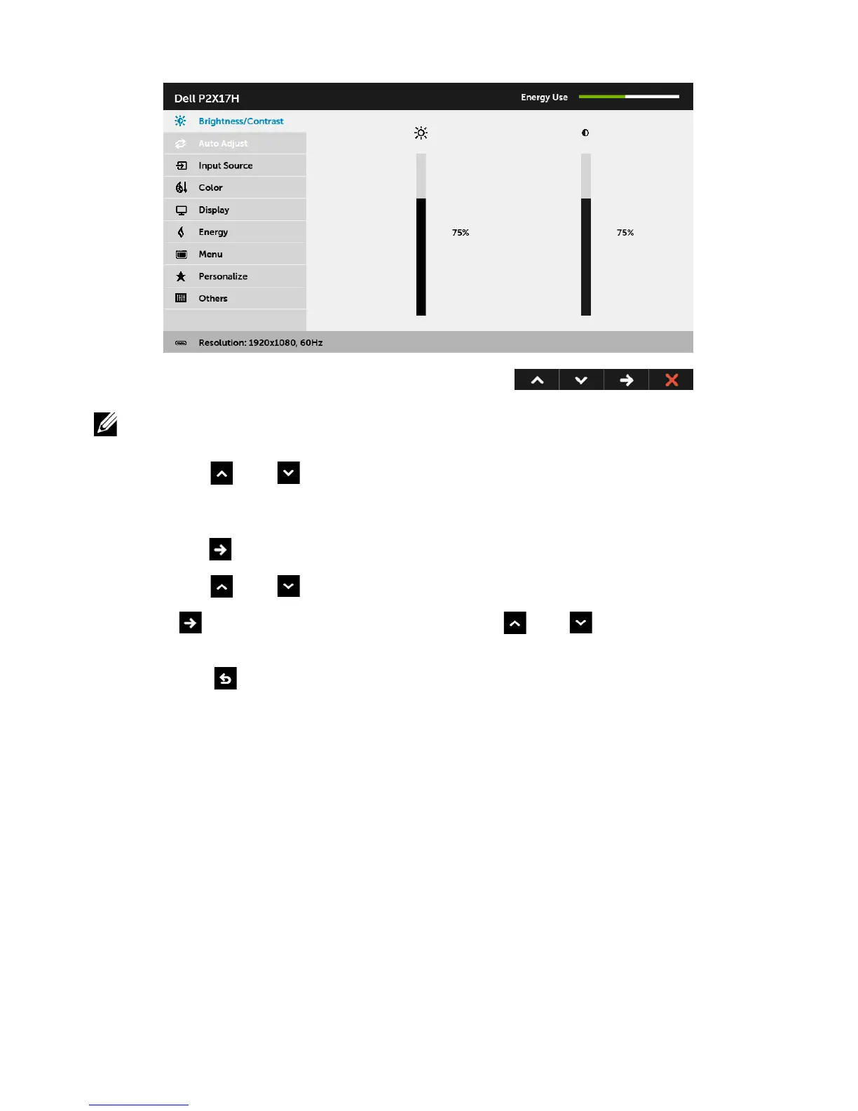 ess the and buttons to move between the setting options. As you move