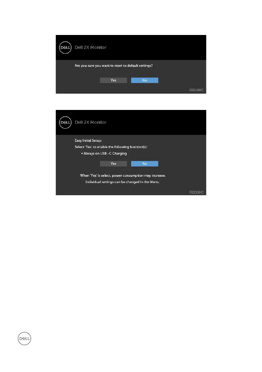 Dell P2219HC - Factory Reset Confirmation Message; Initial Setup Options Messages