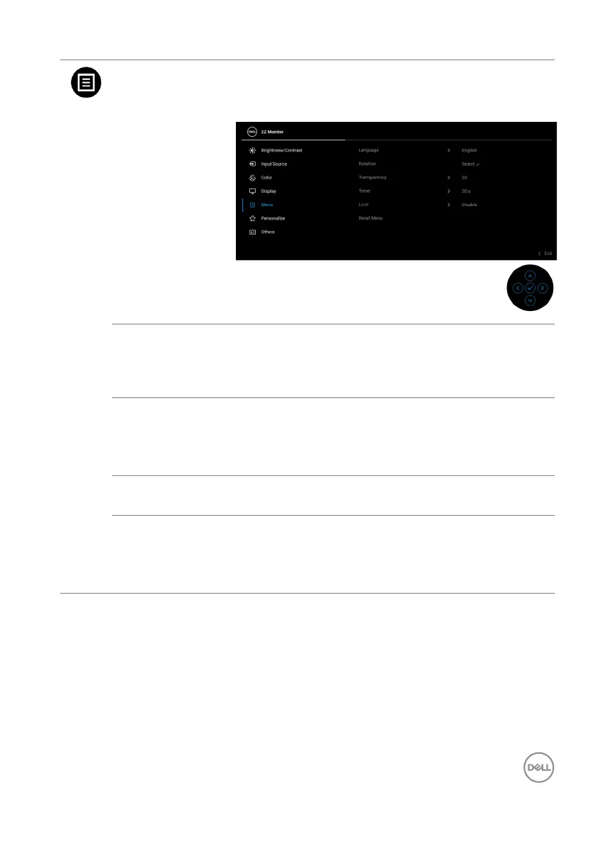 Menu Select this option to adjust the settings of the OSD,