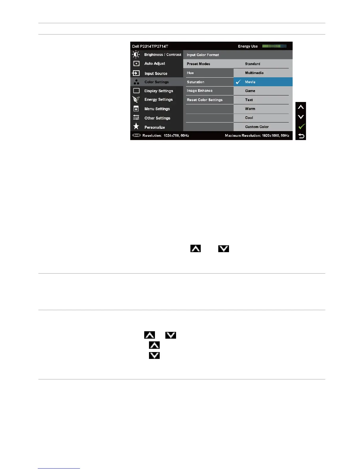 NOTE: Hue adjustment is available only for Movie and