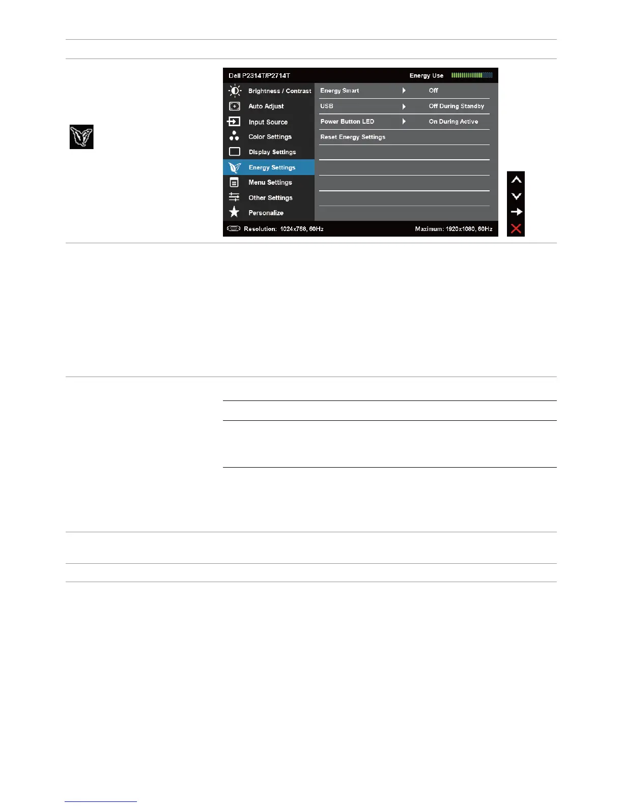 Reset Energy Settings Restores the energy settings to factory defaults.