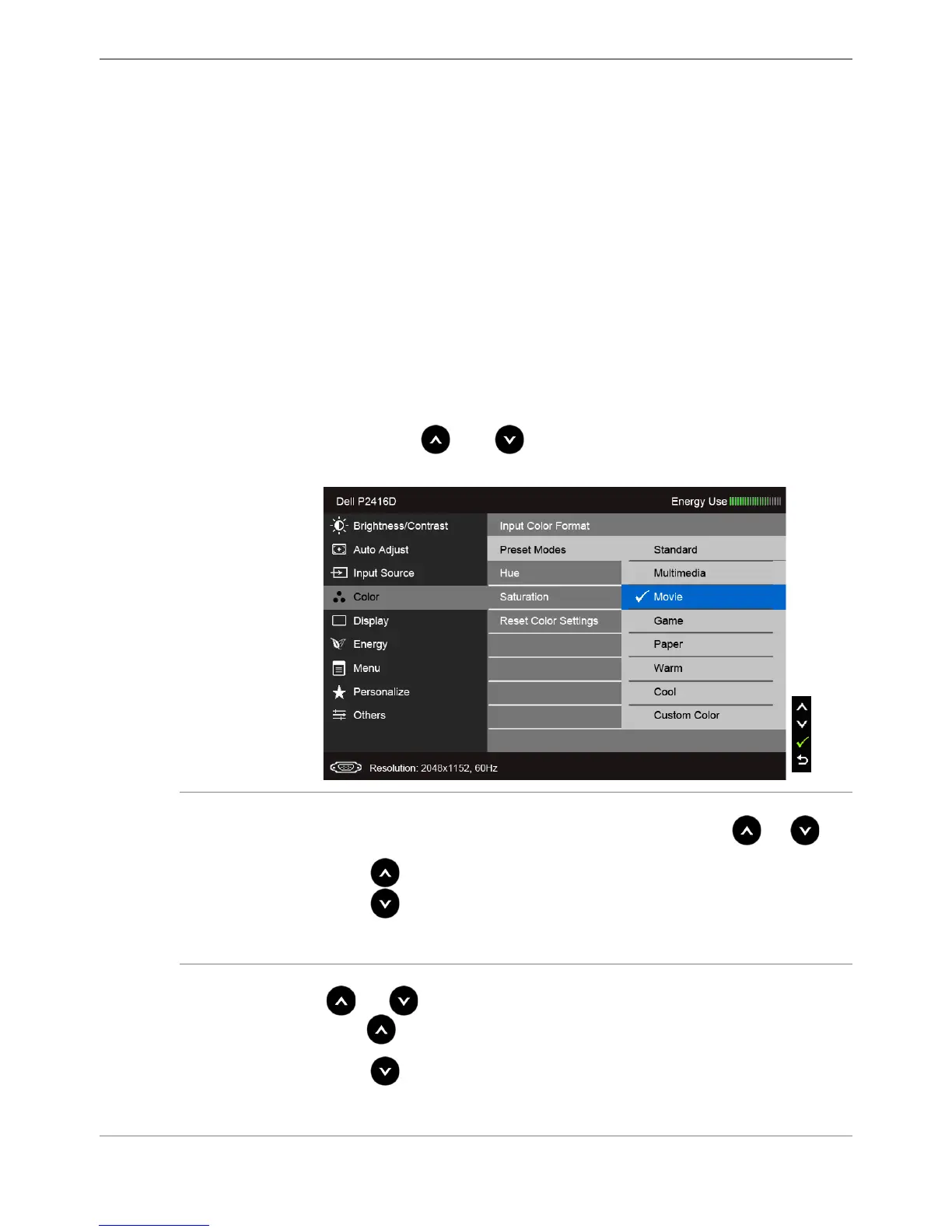 NOTE: Saturation adjustment is available only when you select Movie