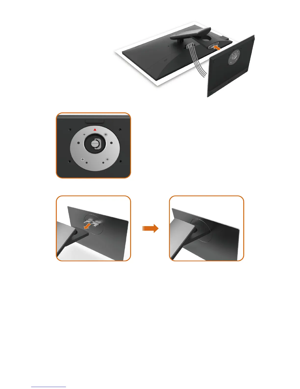 •Align the stand base protruded blocks to the matching slot on the stand.