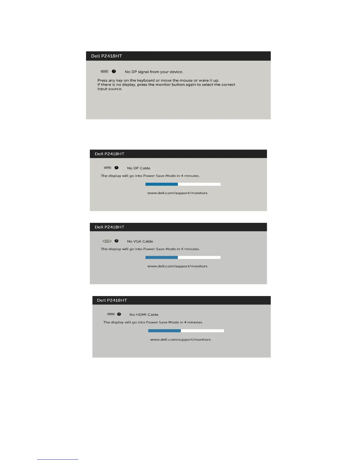 If either DP, VGA, HDMI input is selected and the corresponding cable is not connected,