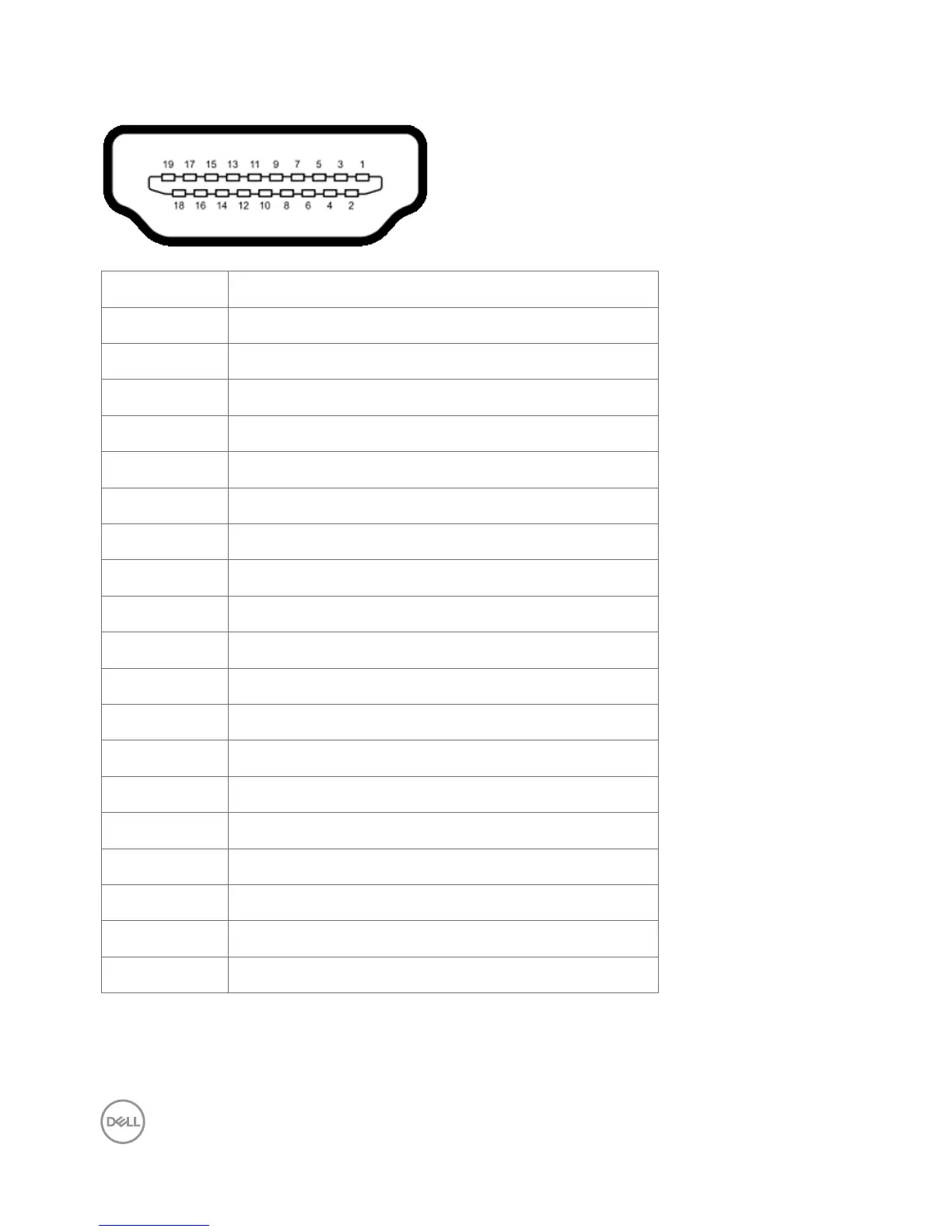 Dell P2419HC - Connector Pin Assignments; HDMI Connector Pinout