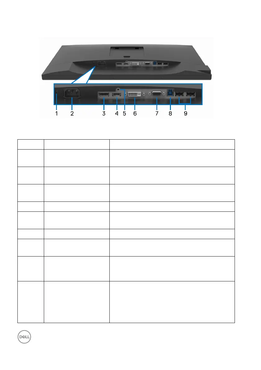 8 USB 3.0 upstream port Connect the USB cable (shipped with your
