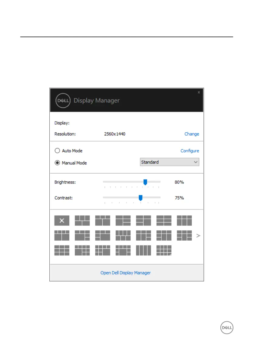 The Quick Settings dialog box also provides access to Dell Display Manager’s