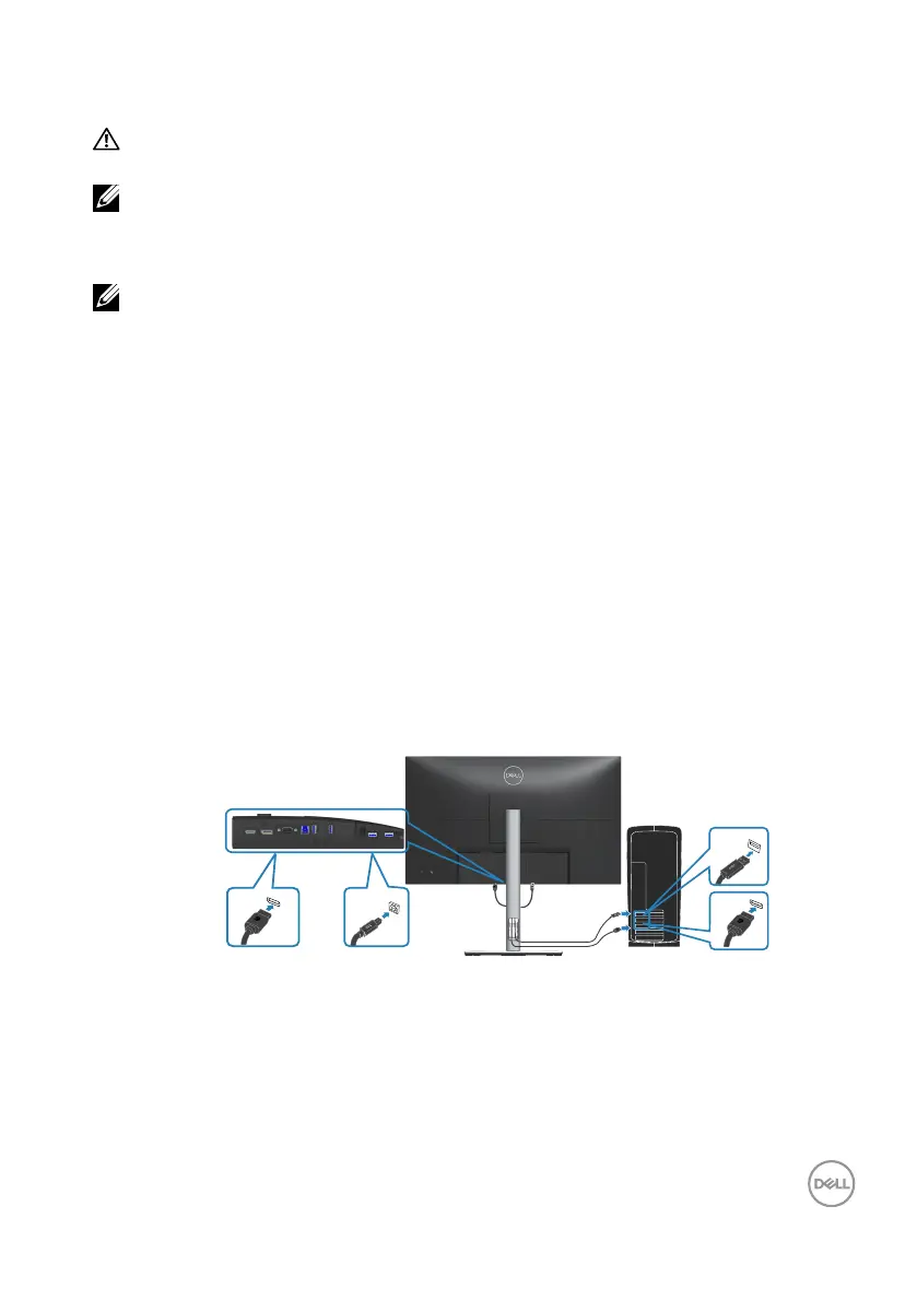 4. Connect the USB 3.2 Gen1 upstream port on the monitor and an appropriate