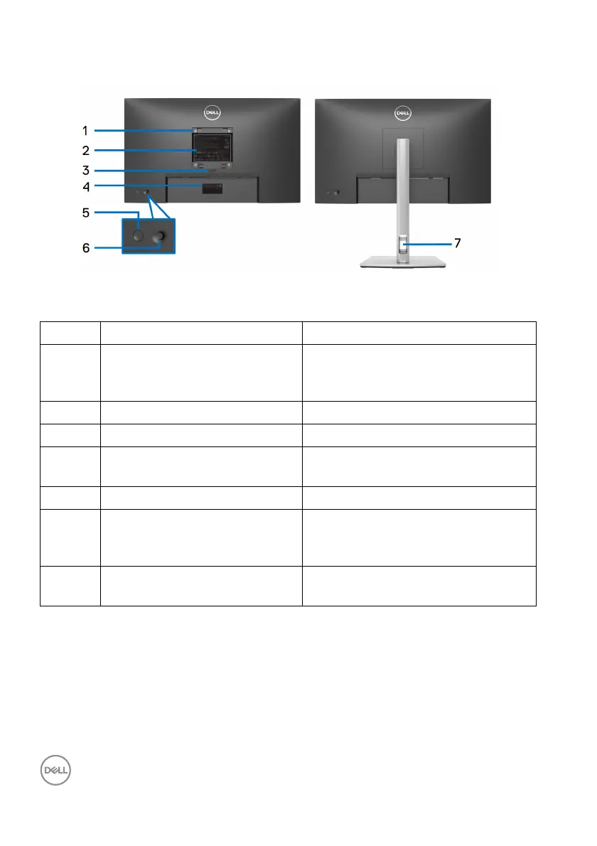 3 Stand release button Releases stand from the monitor.