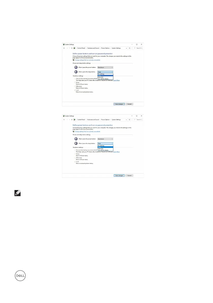 options for selection, namely Do nothing/Sleep/Hibernate/Shut down.