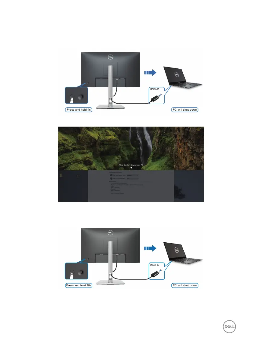 monitor power button for 4 seconds, the screen prompt will ask if you would