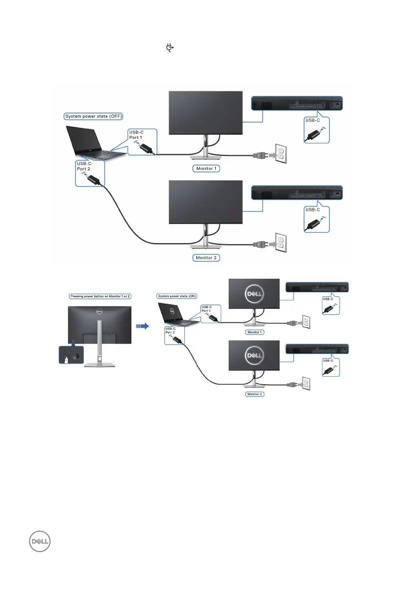 Monitor 1 or Monitor 2 will turn ON the PC, Monitor 1, and Monitor 2.