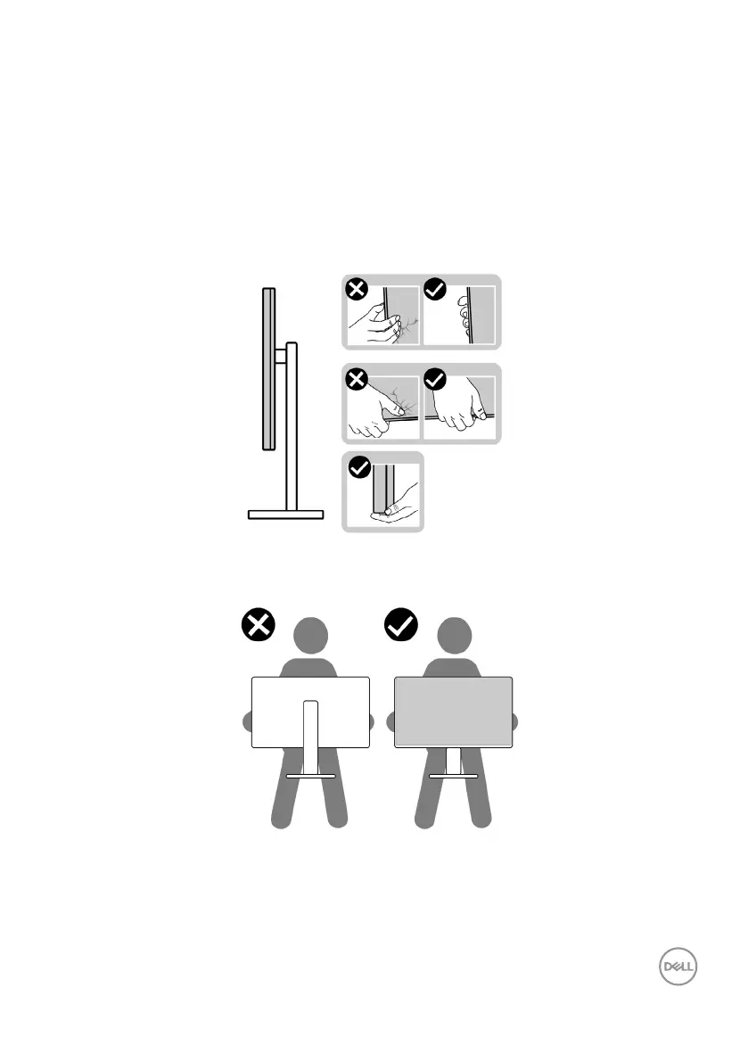 • When lifting or moving the monitor, ensure the screen is facing away from you