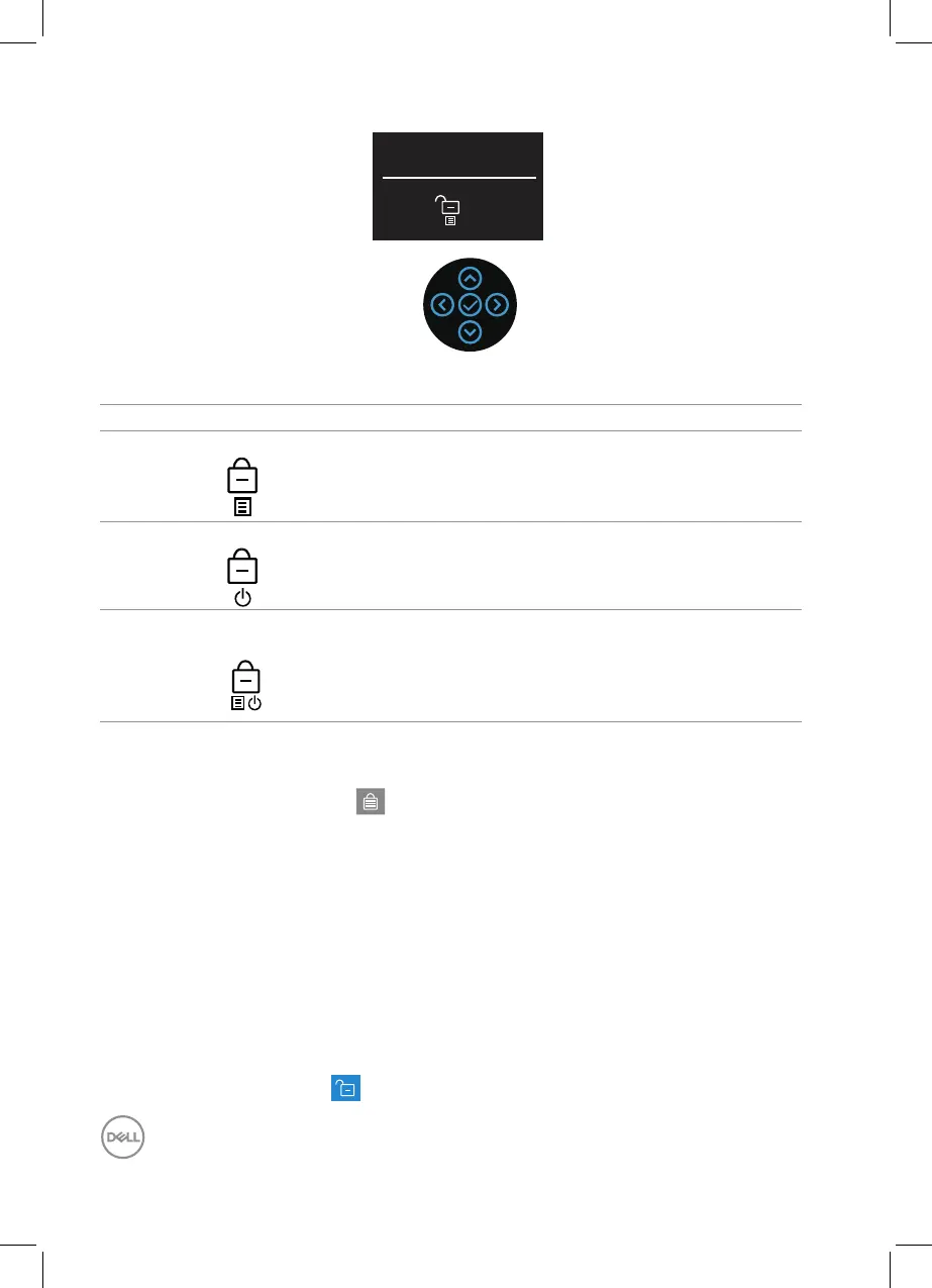 NOTE: To access the Lock or Unlock menu – Press and hold the Up or