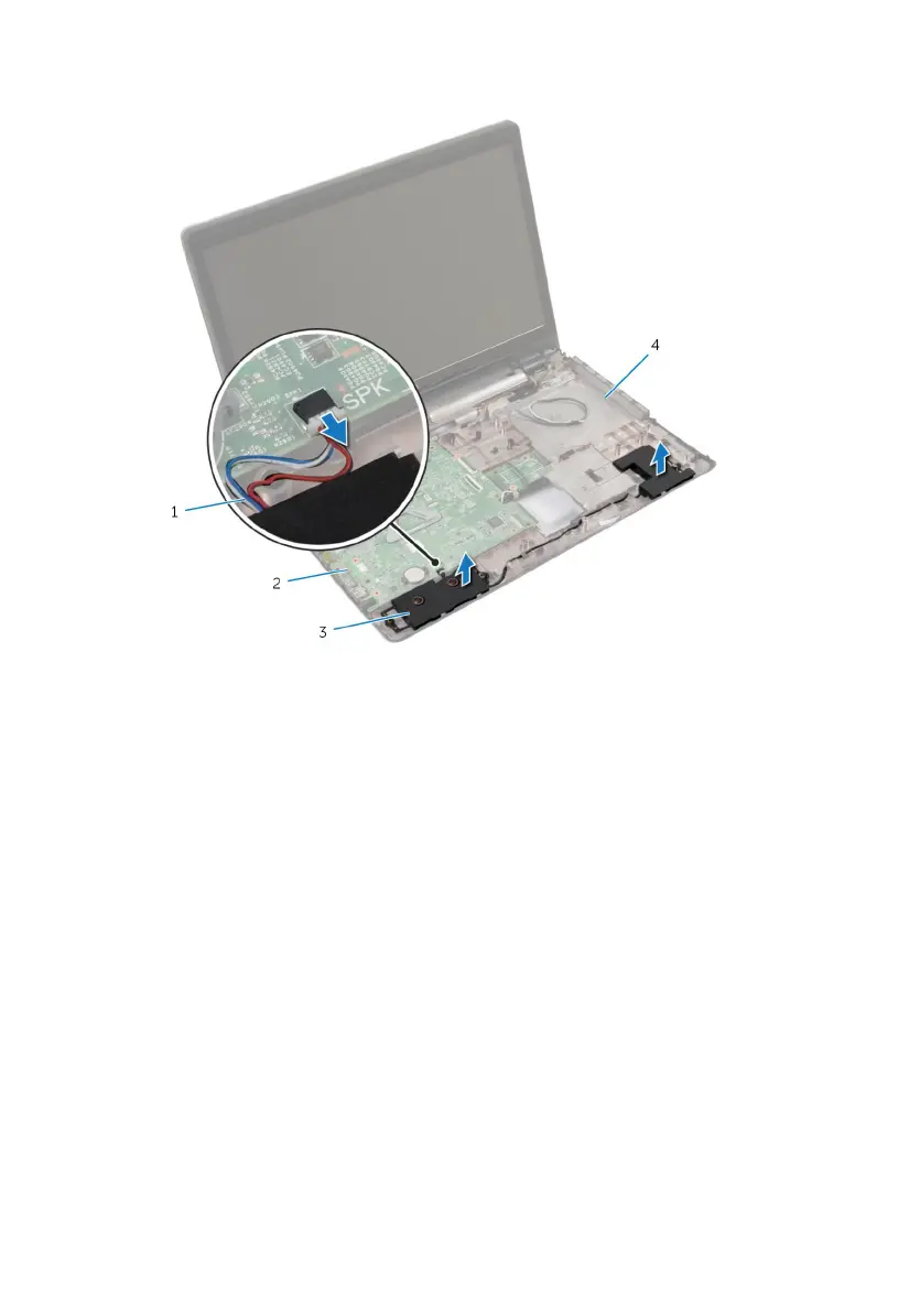 3 Lift the speakers, along with the speaker cable, off the computer base.