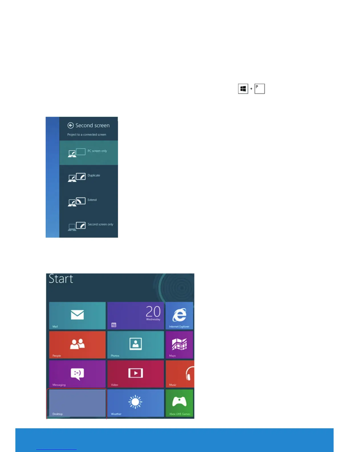 2. While holding down the Windows logo key, press P to toggle between