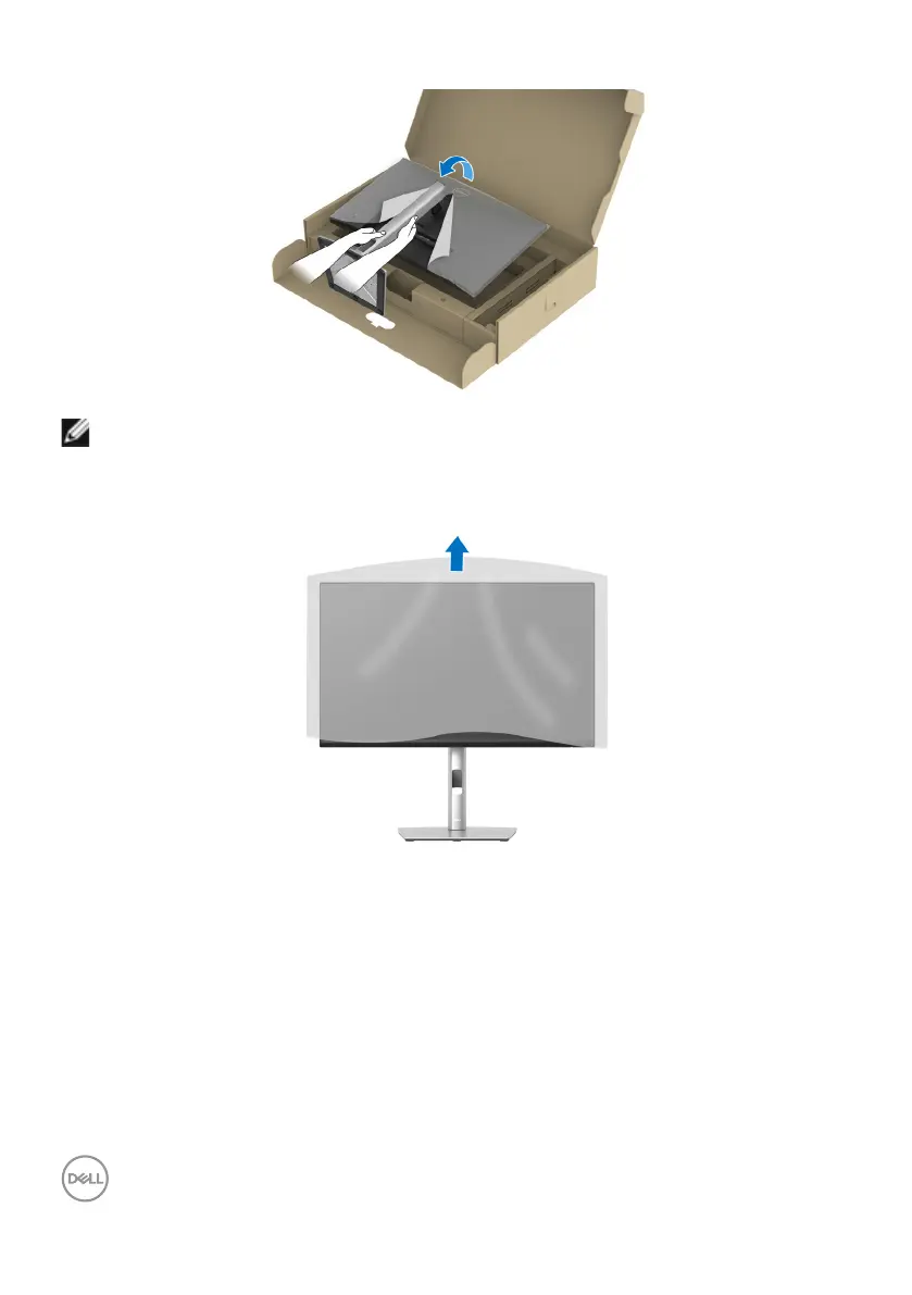 8. Hold the stand riser and lift the monitor carefully, then place it on a at surface.