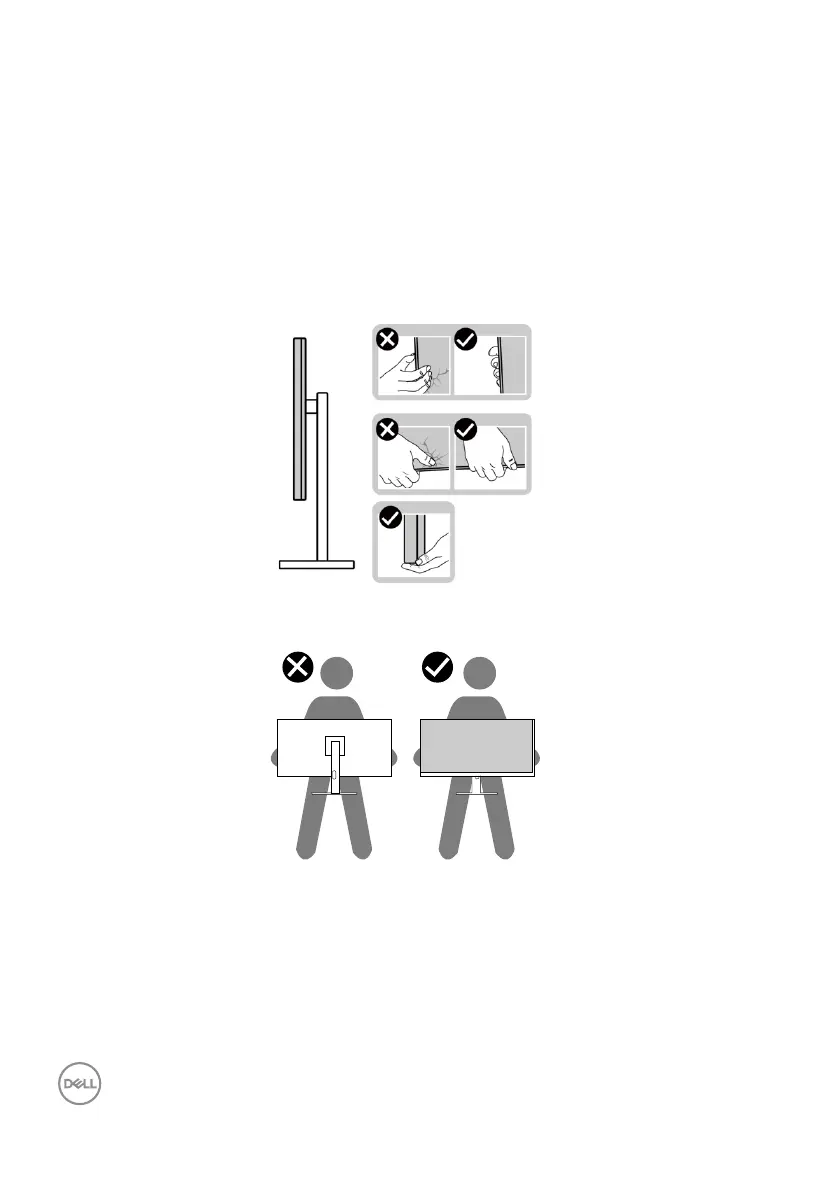 • Hold the bottom edge and the side of the monitor firmly without applying