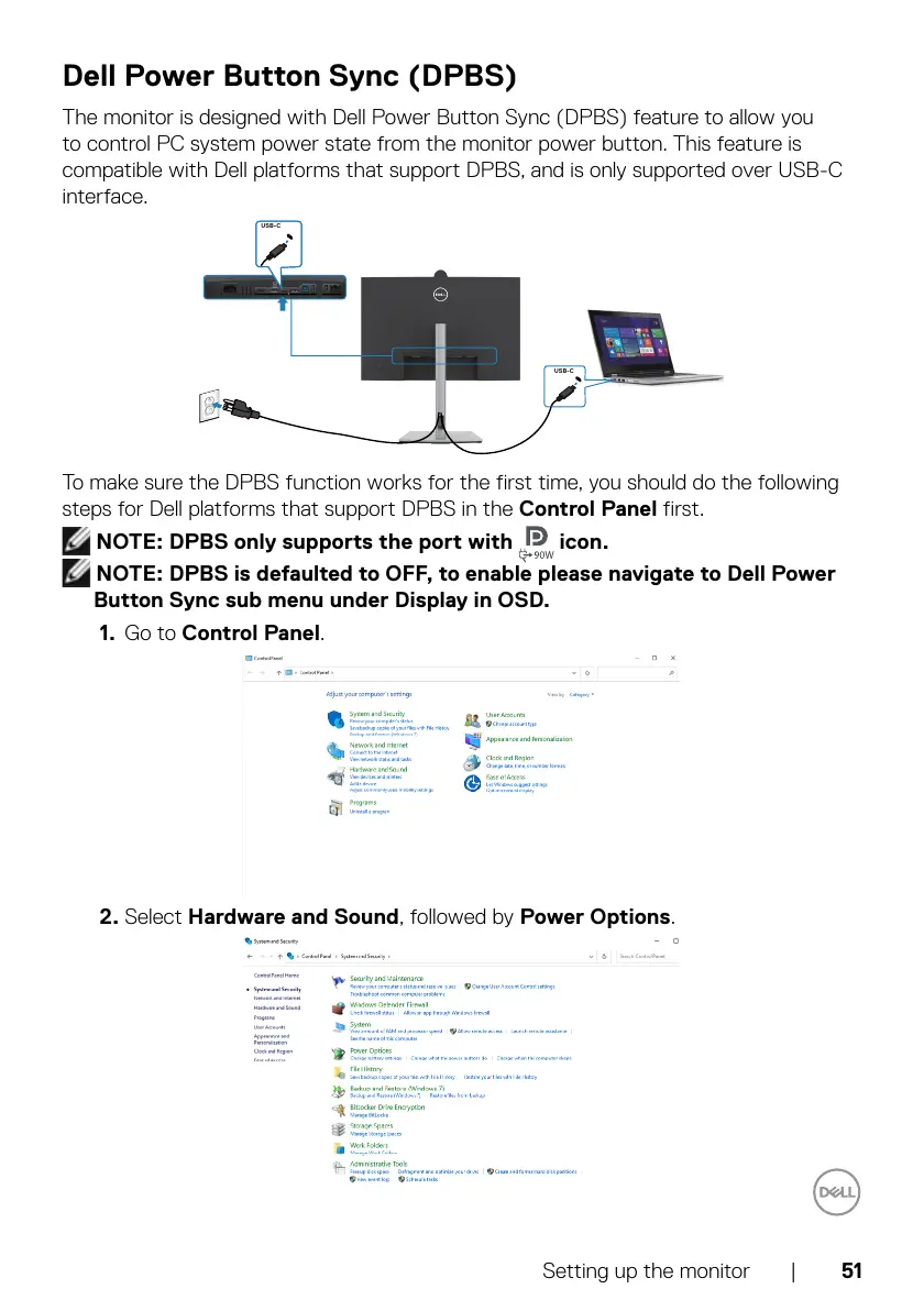 The monitor is designed with Dell Power Button Sync (DPBS) feature to allow you