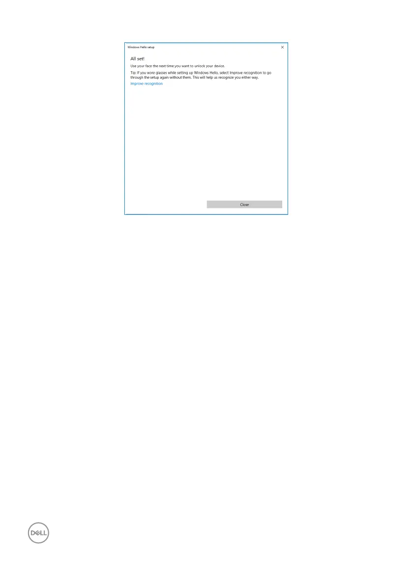 When the following message is displayed, click Close to exit Windows Hello setup.
