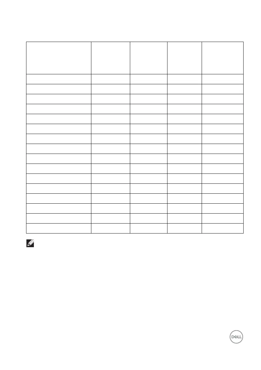 NOTE: The monitor will also support other display resolutions not listed