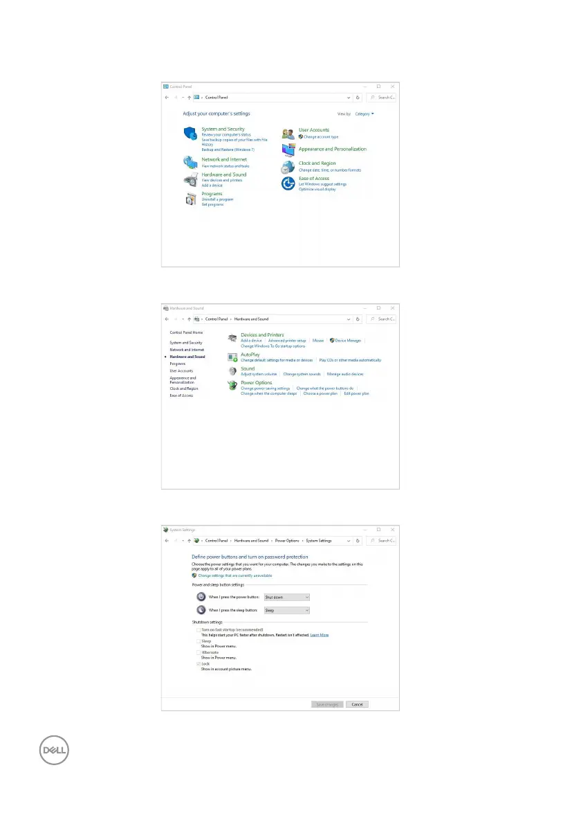2. Select Hardware and Sound, followed by Power Options.