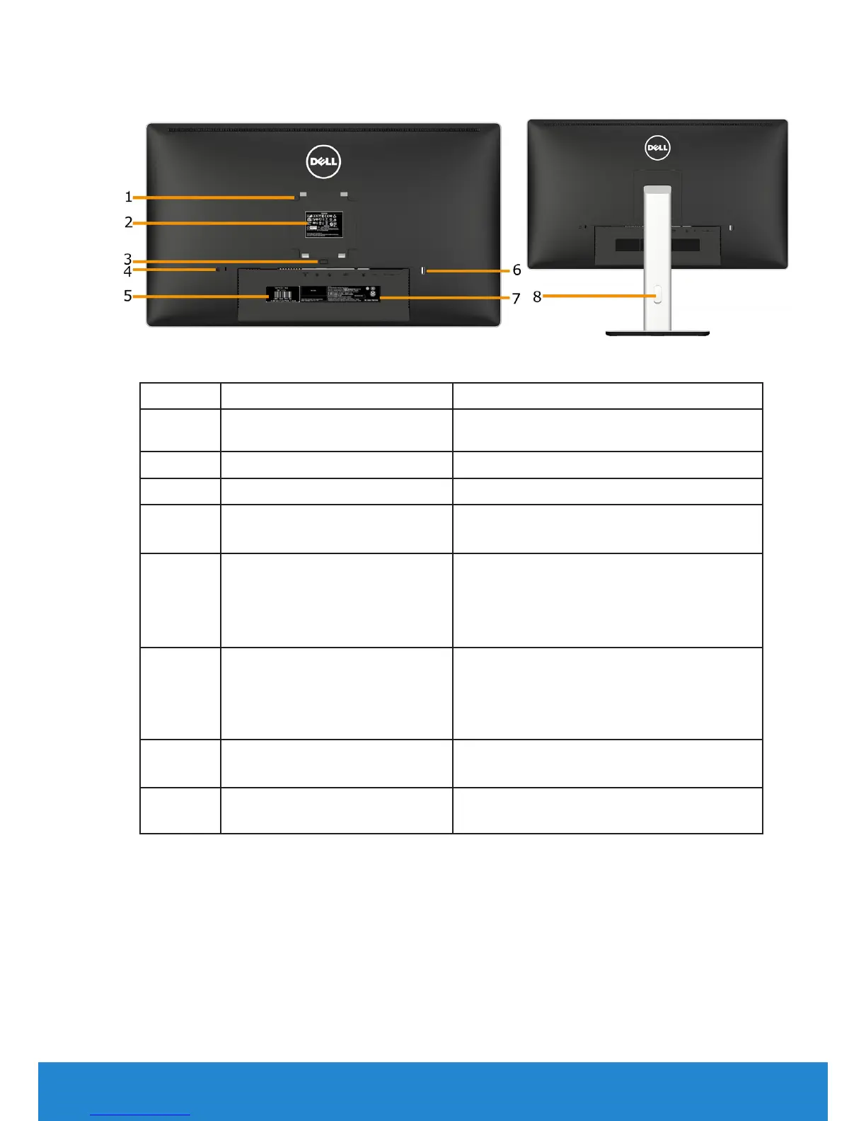 3 Stand release button Release stand from monitor.