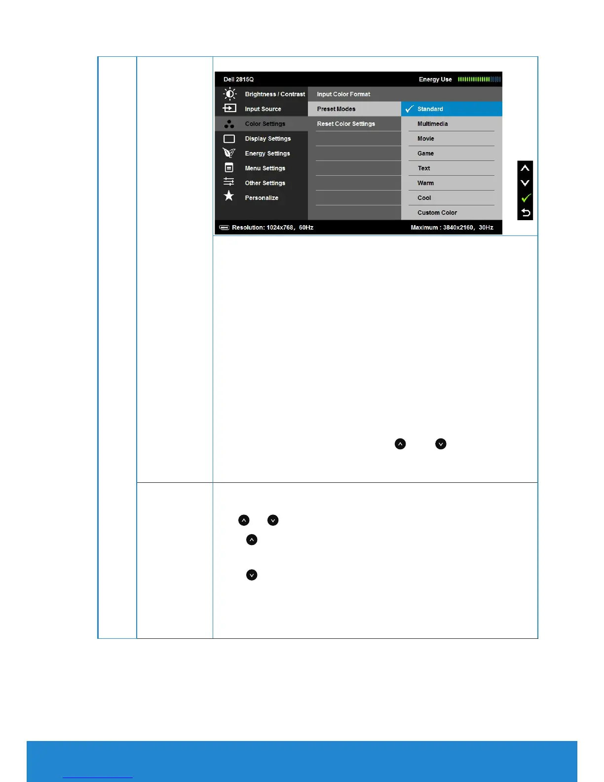 color settings. Press the