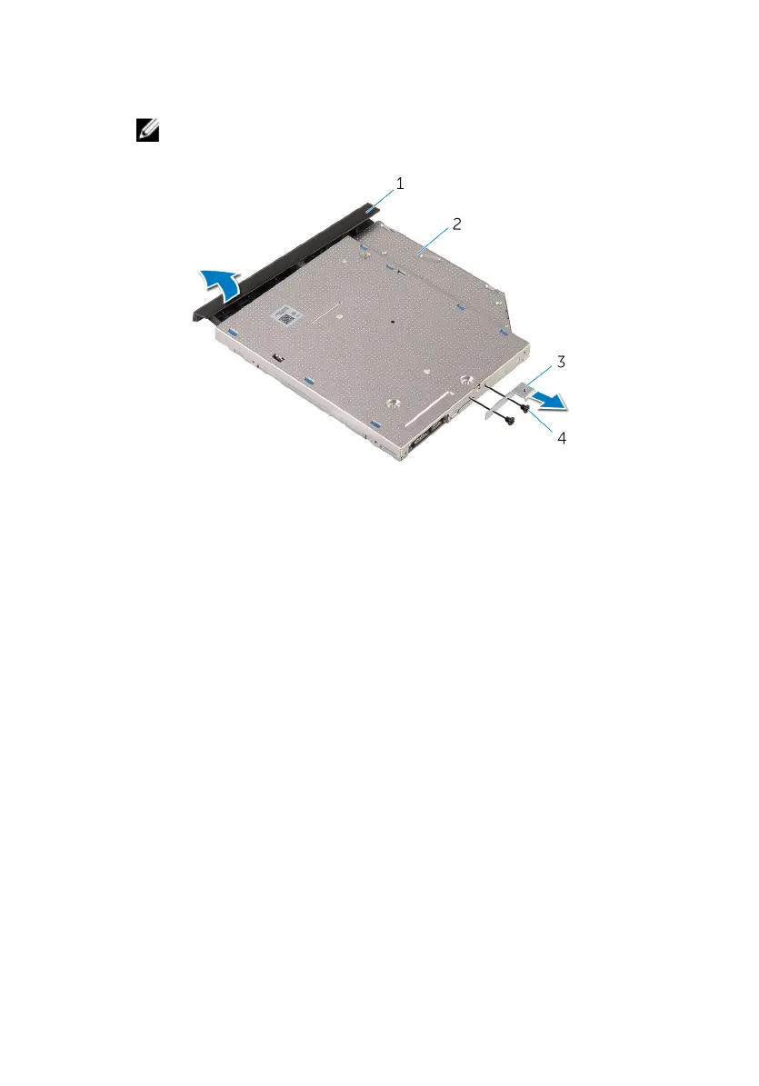 NOTE: Note the orientation of the optical-drive bracket so that you