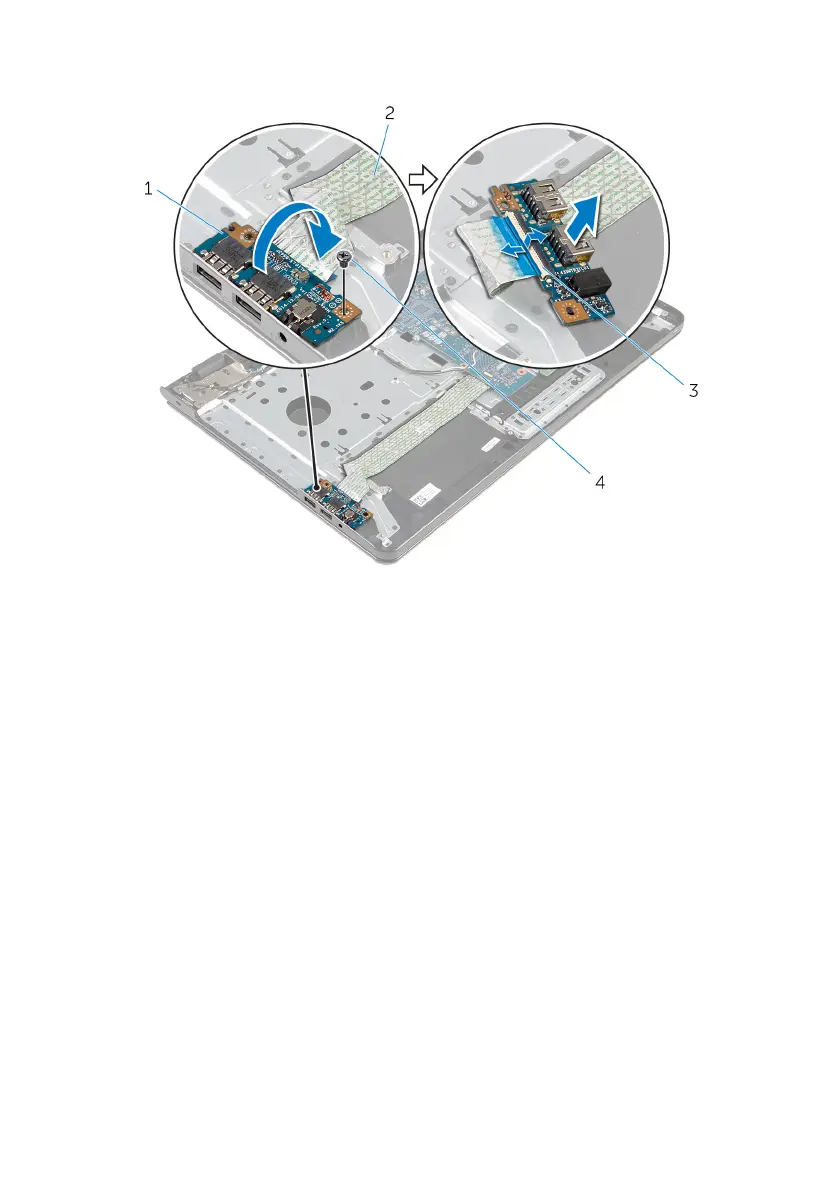 3 Lift the latch and disconnect the I/O-board cable from the I/O board.