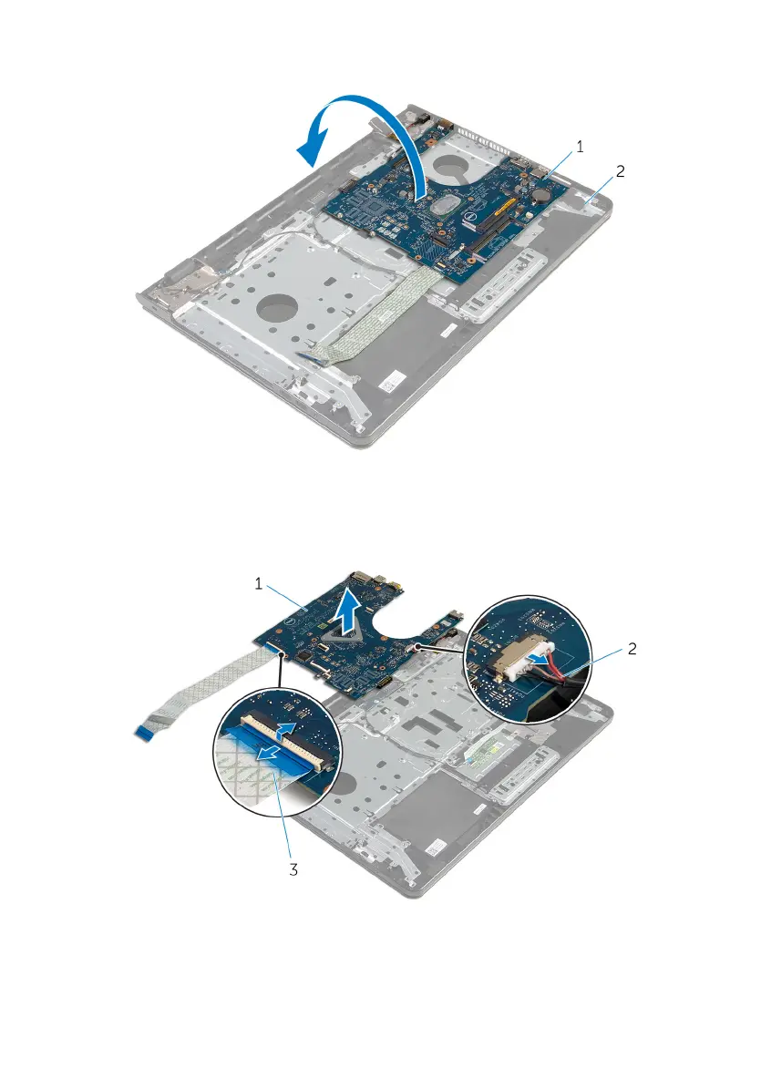 10 Lift the latch and disconnect the I/O-board cable from the system board.