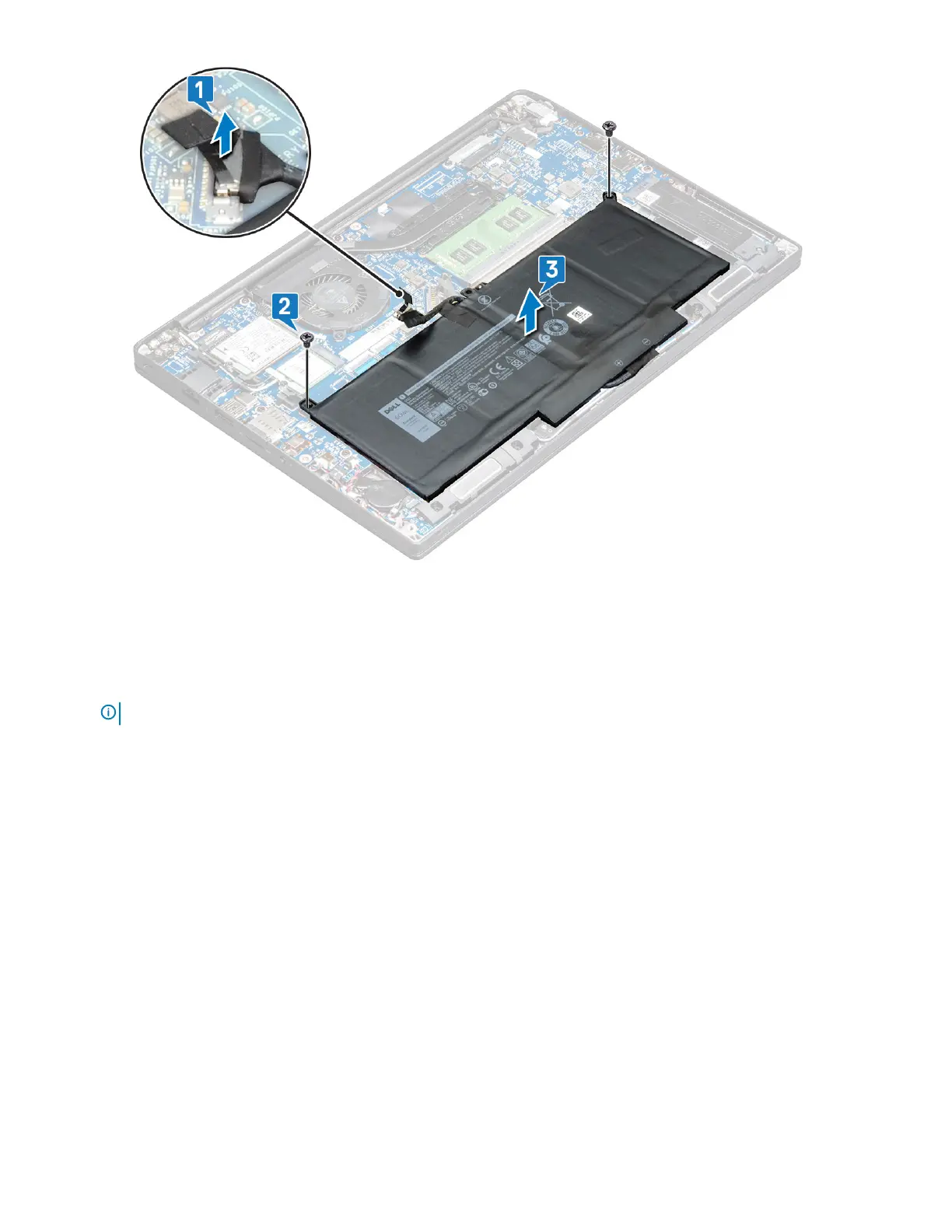 3 Replace the M2 x 5 screws (2) to secure the battery to the computer.