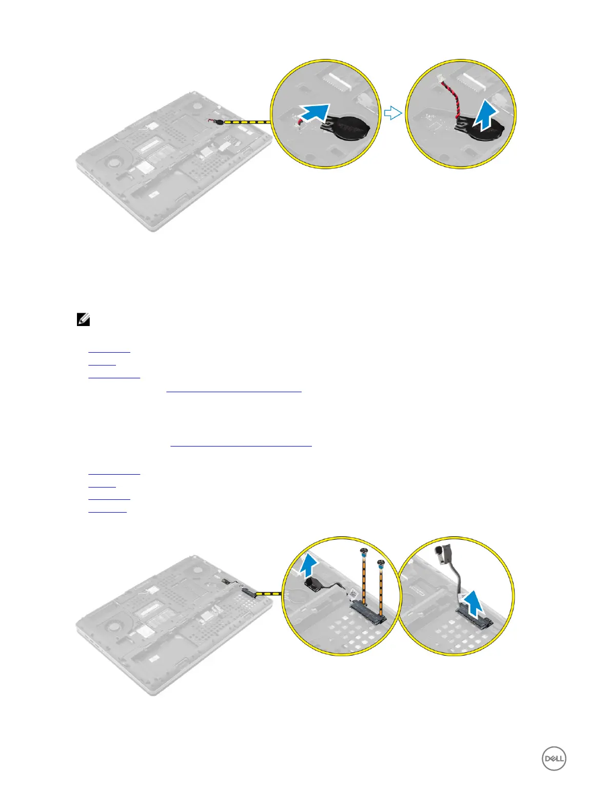 NOTE: Ensure that the coin cell battery cable does not protrude outside its compartment.