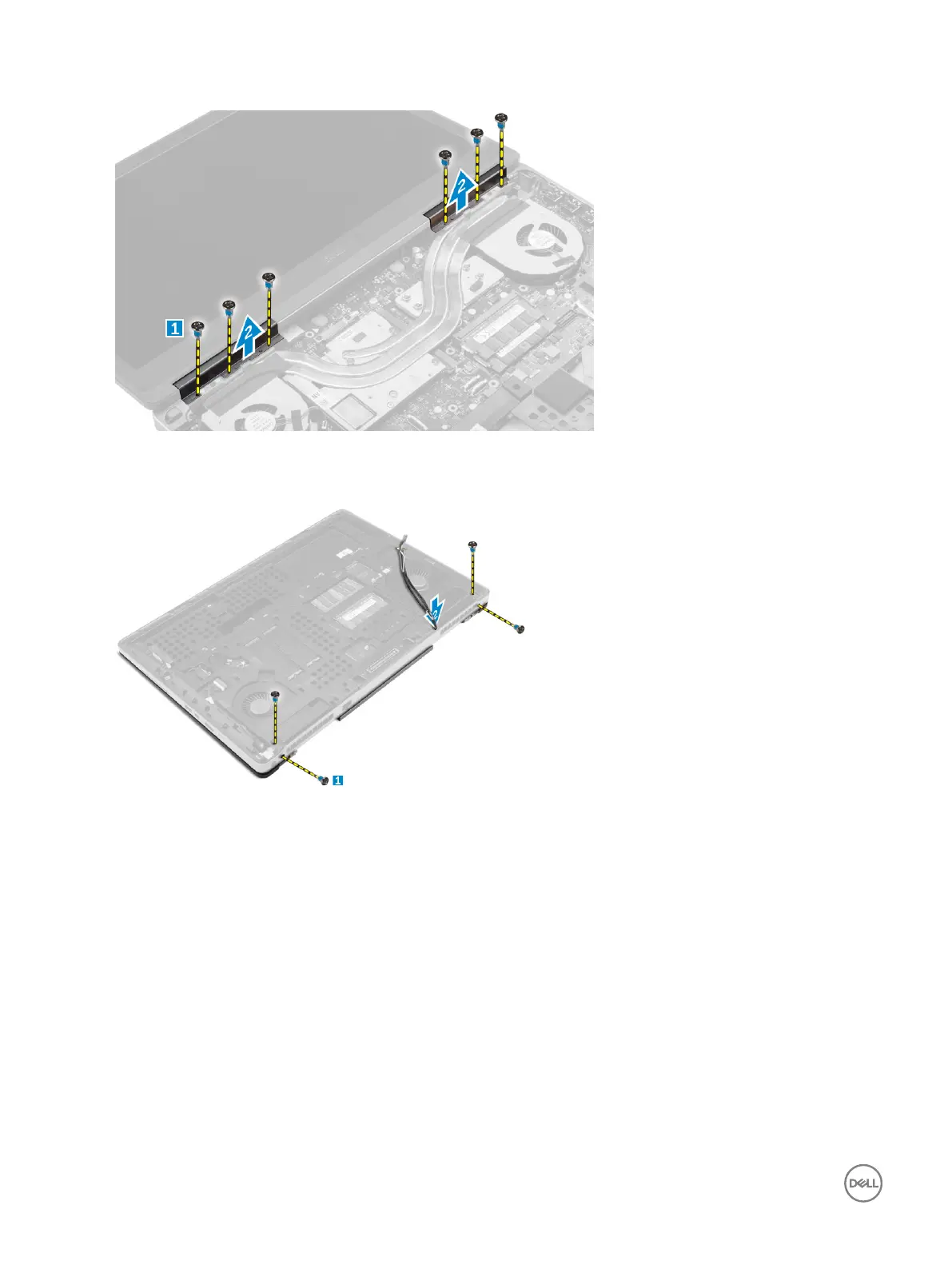 a. Flip the computer and remove the cosmetic screws from the bottom and back of the computer [1].