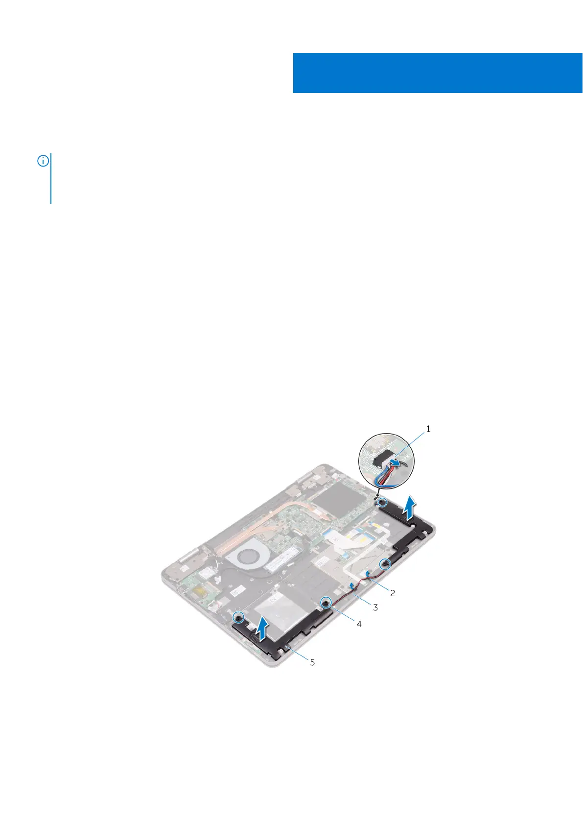 2. Remove the speaker cable from the routing guides on the palm-rest assembly.
