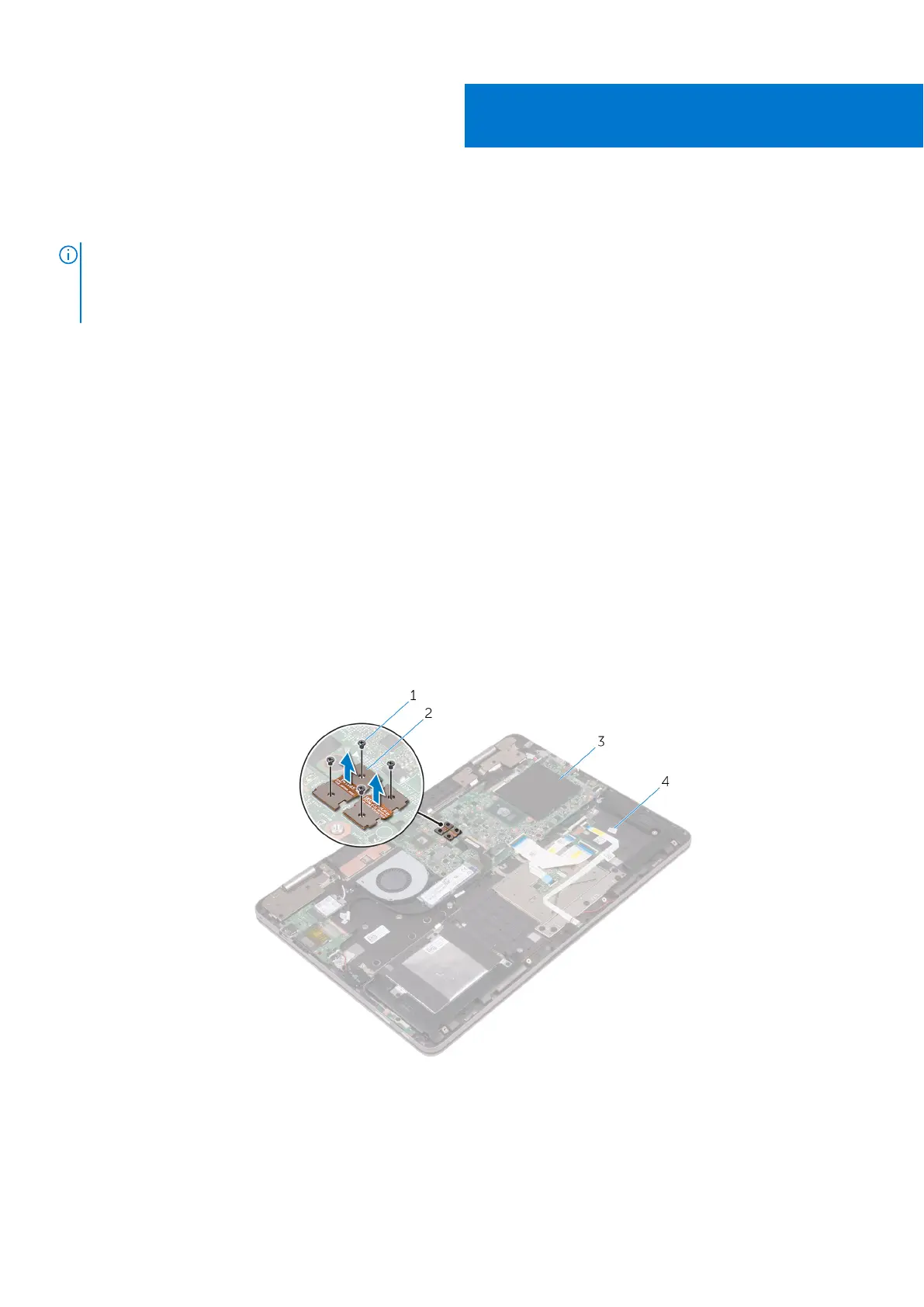 1. Remove the four screws (M2x3) from the graphics daughter-board brackets that secure the graphics daughter-board to the