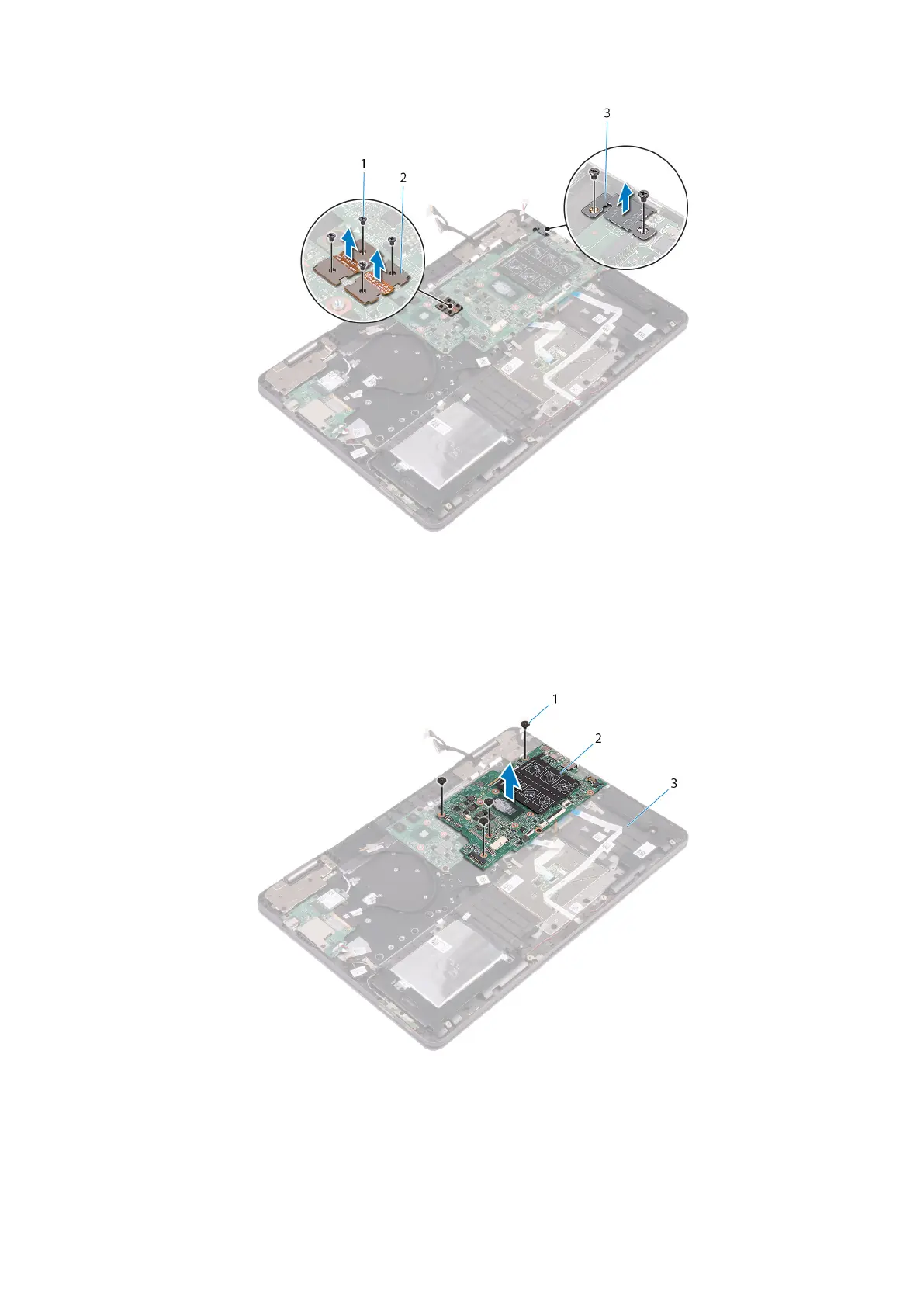 12. Remove the four screws (M2x2 Big Head) that secure the system board to the palm-rest assembly.