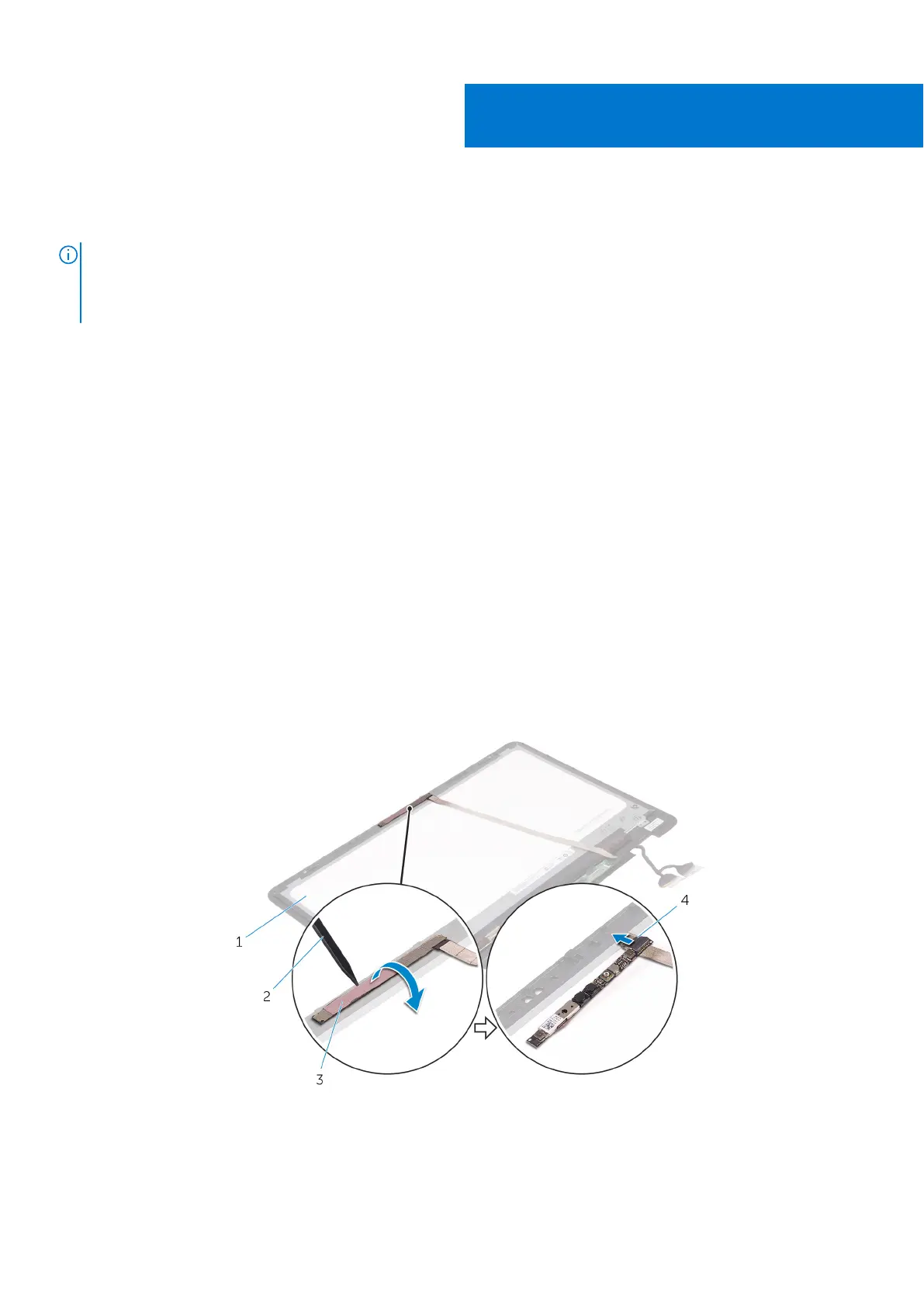 1. Using a plastic scribe, gently pry the camera module off the display-panel assembly.