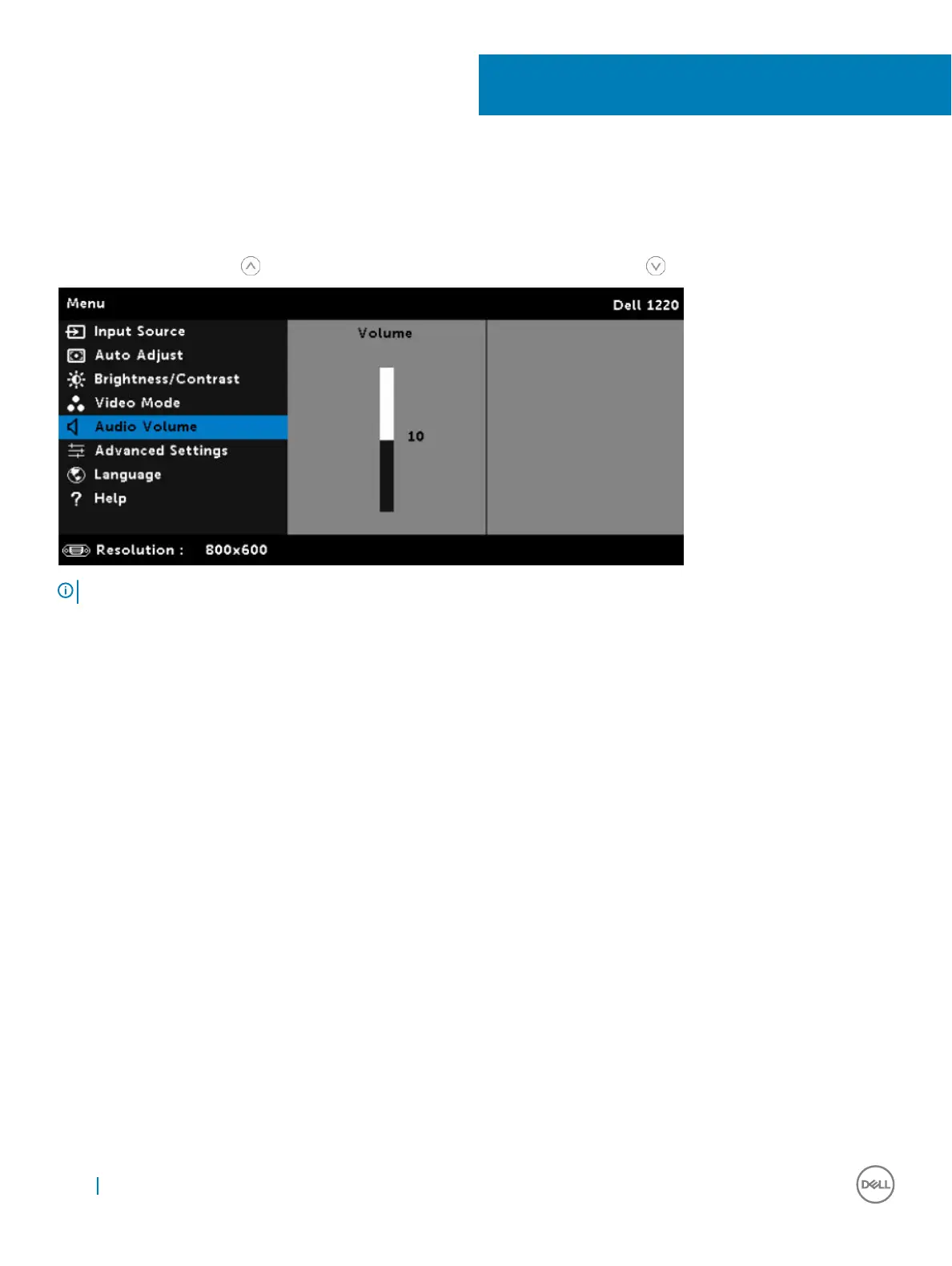 The Audio Volume menu allows you to adjust the audio volume settings of your projector.