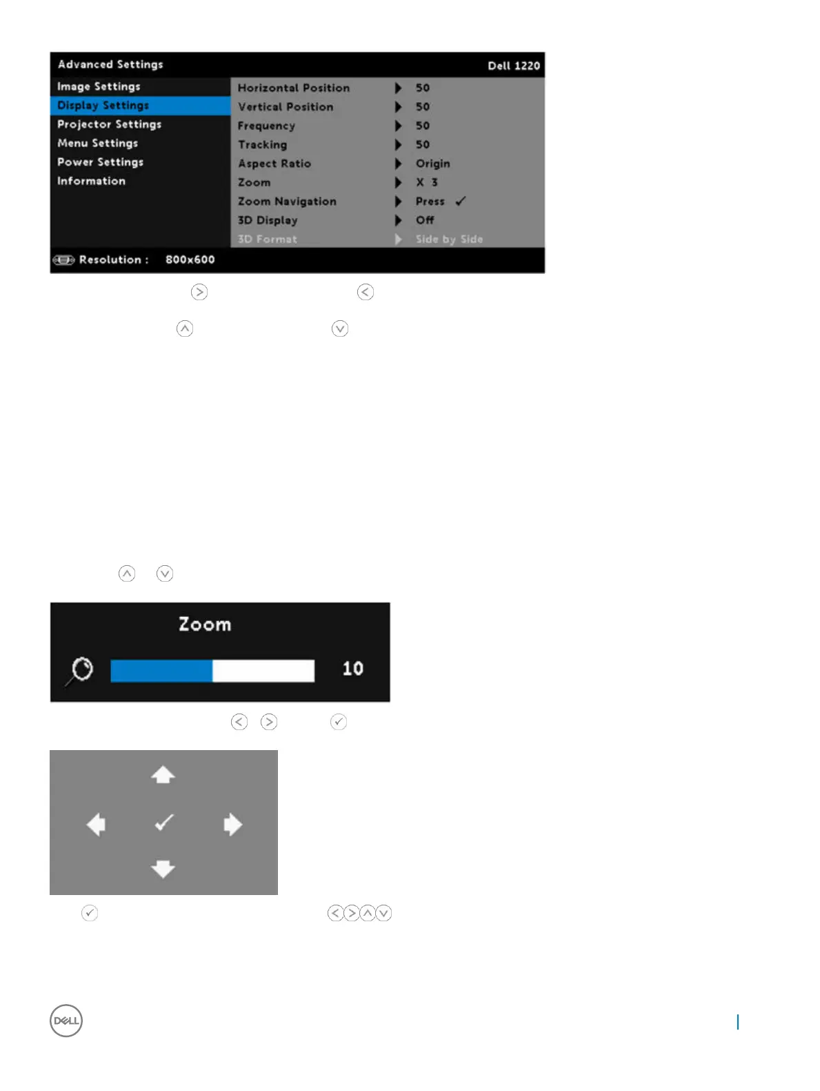 Press to activate the Zoom Navigation menu. Use to navigate the projection screen.