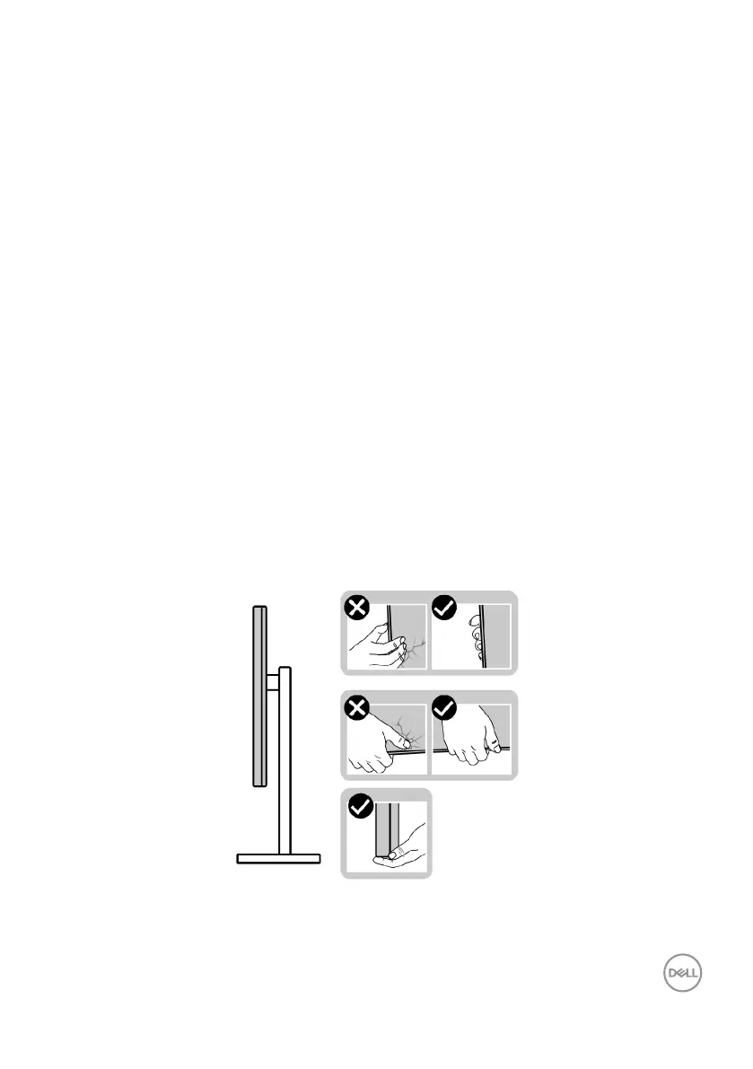• Hold the bottom edge and the side of the monitor firmly without applying
