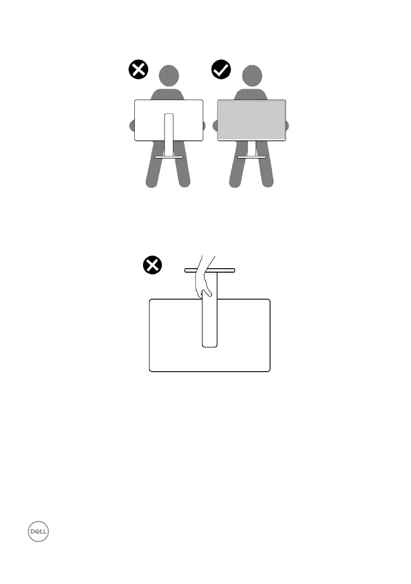 • When lifting or moving the monitor, ensure the screen is facing away from you