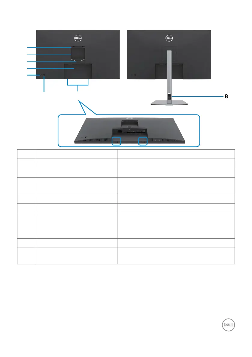 7 Dell soundbar mounting slots Attaches the optional Dell soundbar.